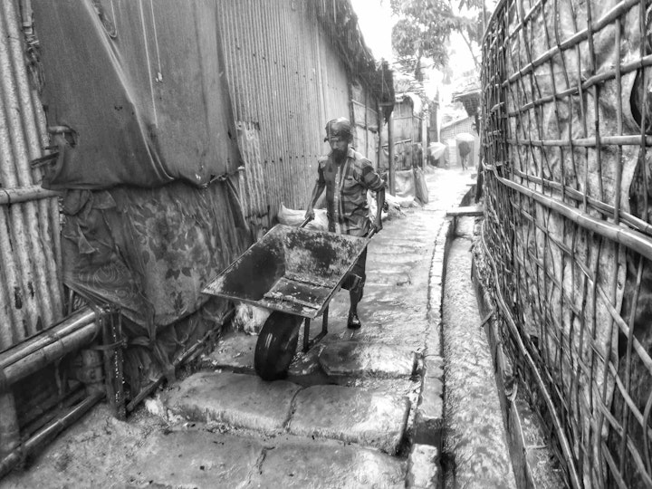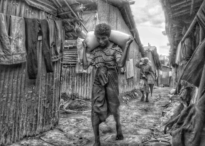 Abdul has a very distinctive editing style. His photographs often deal with work and labour in the camps. This includes child and adult labour. His documentary photographs provide a corrective to those who say that Rohingya sit around and eat aid. Rather he shows discipline and application when Rohingya are permitted to work. This is something the authorities are not keen to encourage, and livelihood opportunities continue to be denied.