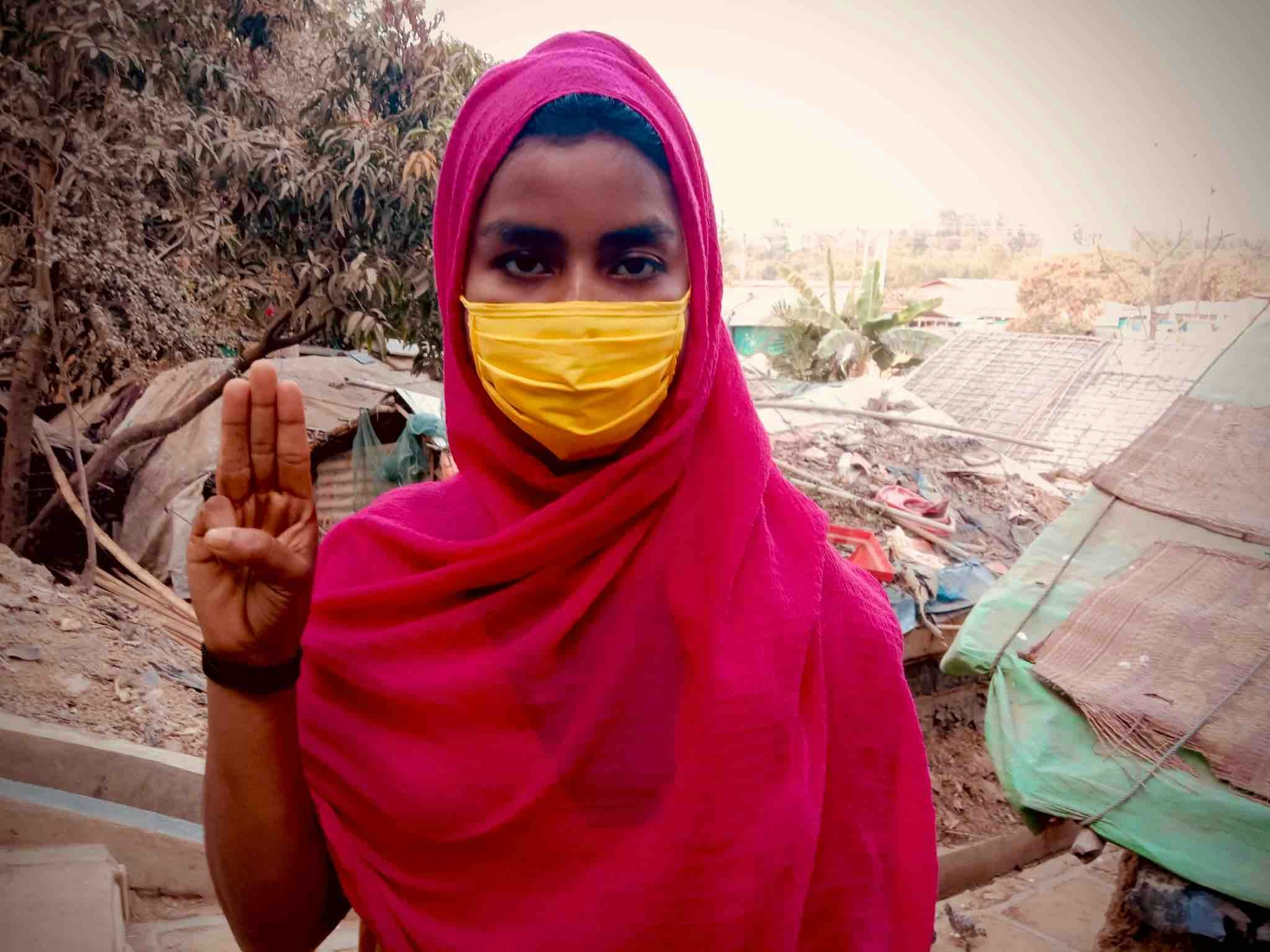 Also in 2021, a few days after the military coup in Myanmar, Noor Hossain photographed a young woman raising a three finger salute against the military dictatorship. This was the first social media image expressing such support for the struggle against Min Aung Hlaing from the refugee camps. The tweet received many supportive responses from Burmese people who acknowledged that they had been misled by the military on the issue of the Rohingya, and apologised.