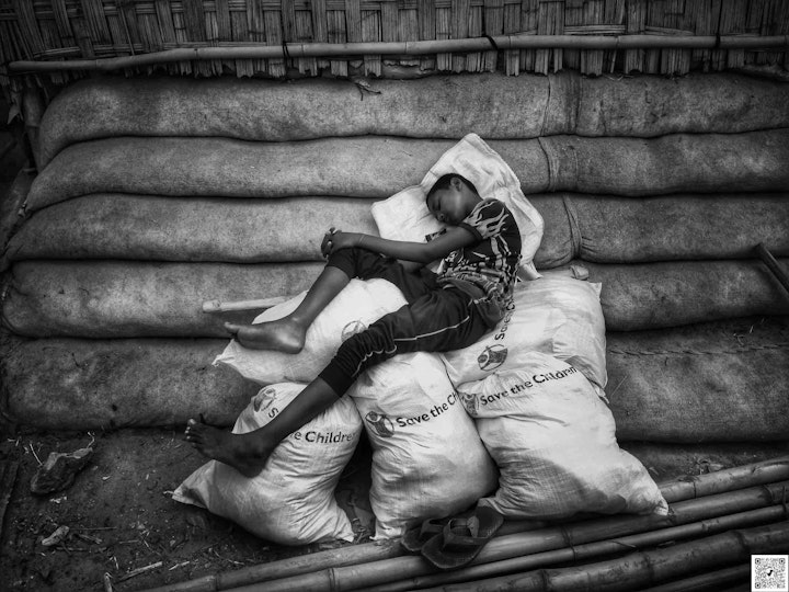 Zahangir Alam has quickly established himself as one of the best photographers in the refugee camps of Bangladesh. His portrayal of Rohingya children in the most challenging of circumstances makes for uncomfortable viewing. He doesn't shy away from describing the lives of children with disabilities in his photography. As such his photographs stand as a corrective to the anodyne photos of children favoured by the so-called humanitarian agencies hell bent on removing any focussed gaze on the appalling conditions that envelop the children. His photographs stand as testimony of his generation.